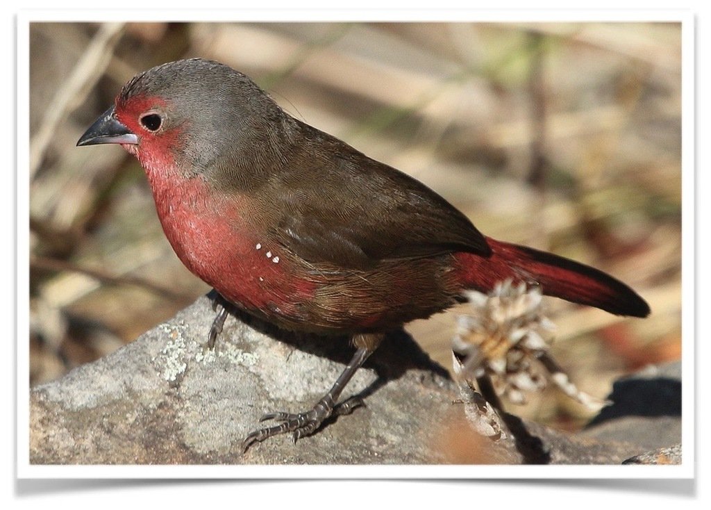 The African firefinch (Lagonosticta rubricata), also called the blue-billed fire finch due to the color of its bill, is a common species of estrildid finch found in almost all parts of Africa. Blue-billed firefinches are great additions to any aviary and will add a punch of color!