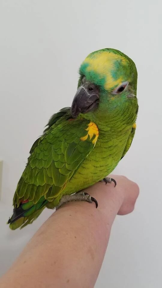 This is a calmer amazon and fun to watch. Blue-fronted Amazons like interaction but are quite content to entertain themselves for hours at a time just playing with their toys. The Blue-Front gets along quite well with other birds. It is usually non-aggressive although the males might get a little territorial during breeding season or molting.
