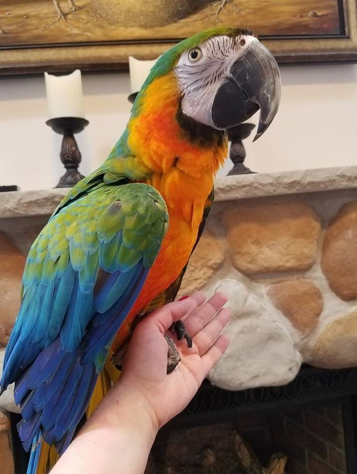 The behavior and temperament of hybrid macaws are more unpredictable and uncertain than the coloration. The personality of a Scarlet is such that it requires good socialization and a firm consistent hand in training, especially as it matures. The Catalina can have these characteristics, but it can also have the gentle nature and the speaking ability of the Blue and Gold Macaw mixed in. It can be a very affectionate, inquisitive, and fun pet that is beautiful.