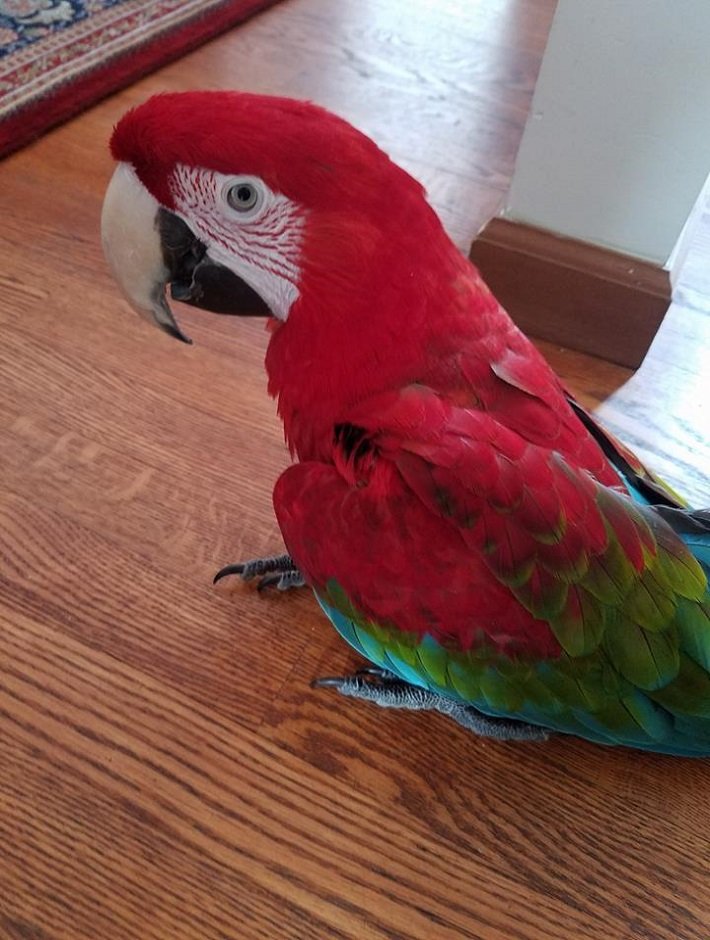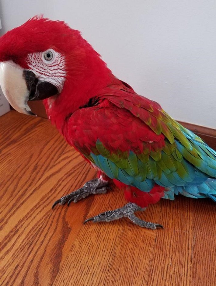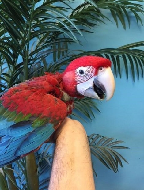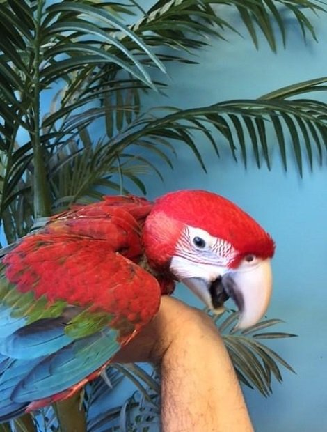 Green-winged Macaws are lovable, friendly, and intelligent. Macaws can be quite loud, being especially loud when anticipating interaction with you. They will also mirror your moods, so if you are agitated, they can become agitated. If you are happy and loving, well so is your pet.